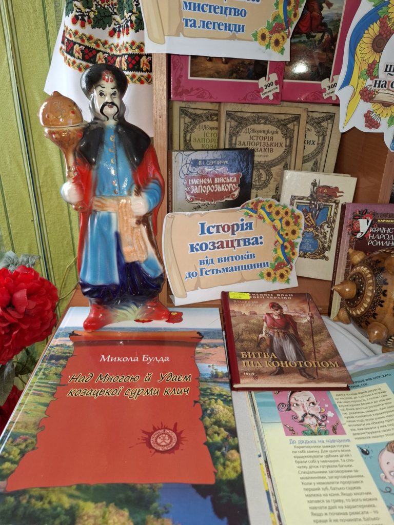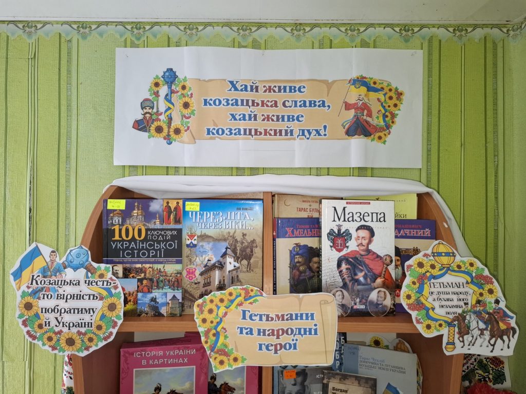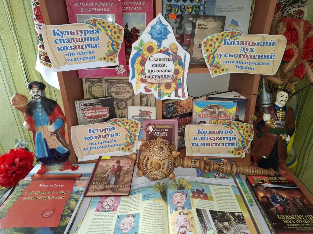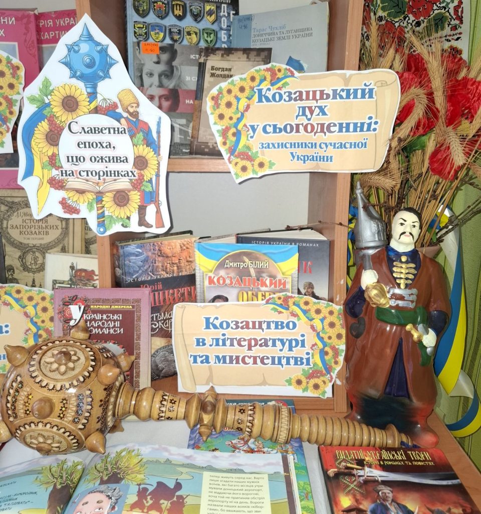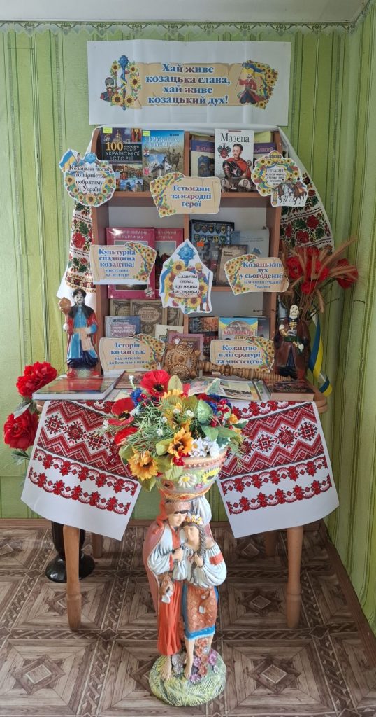 У Куріньківській сільській бібліотеці-філії до Дня українського козацтва оформлено книжкову виставку „Хай живе козацька слава, хай живе козацький дух“. Зі сторінок представленої літератури: історичної, художньої, довідкової можна дізнатися про історичні події козацької доби, про державну діяльність українських вояків, їх героїчну звитягу, походи, про життя та побут козаків на Січі, про славні звичаї, традиції та легенди. Також можна ознайомитися з матеріалами, які занурюють у неймовірну атмосферу славних часів козацької доби, адже козацтво є носієм гетьманського коду предків, було гордістю, силою та опорою протягом багатьох століть. Окремо виділена і інфомація про найбільш яскравих постатей Війська Запорізького. Не випадково, свято українського козацтва співпадає з Днем захисників та захисниць України. На виставці також представлено матеріали про подвиги сучасних воїнів-захисників, які сьогодні продовжують героїчні сторінки нашої історії і боронять рідну землю від ворогів. Століттями триває боротьба за незалежність України, за волю і свободу нашої держави, нашого народу. Дух нашої нації загартувався в боротьбі, ми – нащадки тих, хто не зламався. Ми обов’язково Переможемо! Слава Україні! Героям Слава!